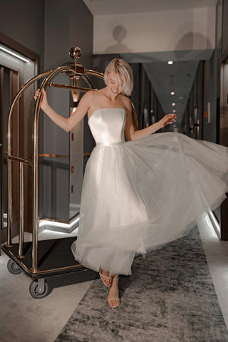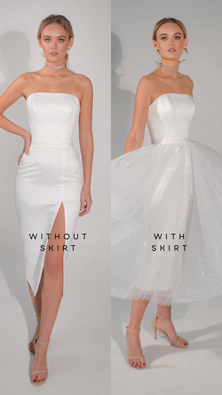 This midi-length detachable skirt adds gloss and sparkle to short or midi dresses. With layers of sparkly tulle, it brings a romantic, magical touch to any style, ensuring you feel glorious on your special day.