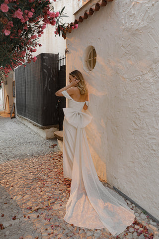Pro tip: Off-the-shoulder dresses are gorgeous, but they may limit your movement if you plan on dancing or being very active. Lace is not very stretchy, so raising your arms or participating in activities that require a lot of arm movement may be difficult. Just keep this in mind!