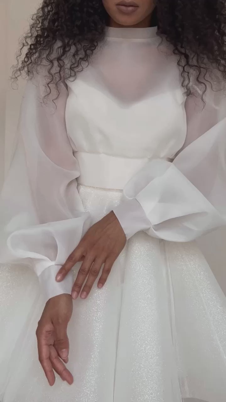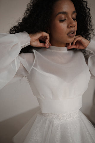 Organza Wedding Blouse with Long Sleeves & High Neck | Wedding Accessories for Brides – Olivia Bottega