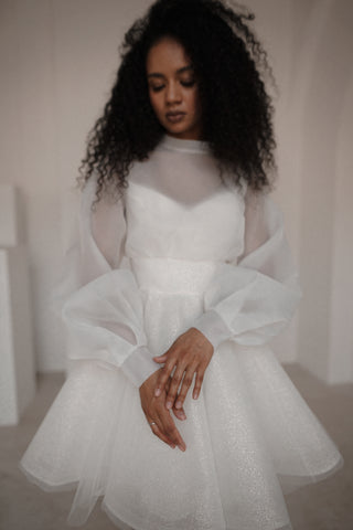 Organza Wedding Blouse with Long Sleeves & High Neck - Olivia Bottega