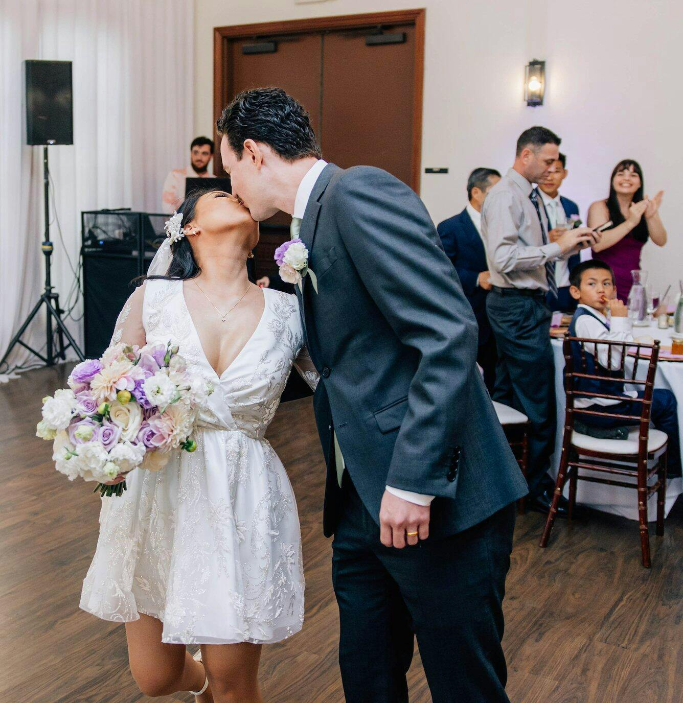 The dress itself is beautifully made in Europe with high-quality craftsmanship, & the glitter detail was absolutely stunning in the sunlight!! I chose a bold and unique option with the detachable train, and I am so glad I did. At first, I SUPER worried that a detachable train might feel “less traditional,” but it ended up being one of my favorite features. It was 'made to order' to match the floral lace of the Short Kay style (I went with a 36 inch train). I received sooooo many compliments about how it was detachable, people were even asking if I “cut” the dress after the ceremony because it transitioned so seamlessly into the short dress underneath. I felt so happy walking into the reception area with my short dress underneath. The shorter style was perfect for dancing and mingling, while the train gave me that dramatic, elegant look for the ceremony! I felt like a princess. It was not too long at all. Right now, the train is carefully folded and stored away, something I hope my future daughter will one day use or at least admire it :) So... if you’re considering Olivia Bottega, don’t hesitate..they truly go above and beyond to meet your needs and help bring your vision to life!!! Ahh pictures do not do the dress justice. I usually am such a 'Karen' when it comes to reviews but I truly have nothing negative to say about this brand. Veil was (Wedding Veil Enn To Waist 29" (74cm) and the skirt was selected as 'Devon' but with the customizations that were mentioned earlier.