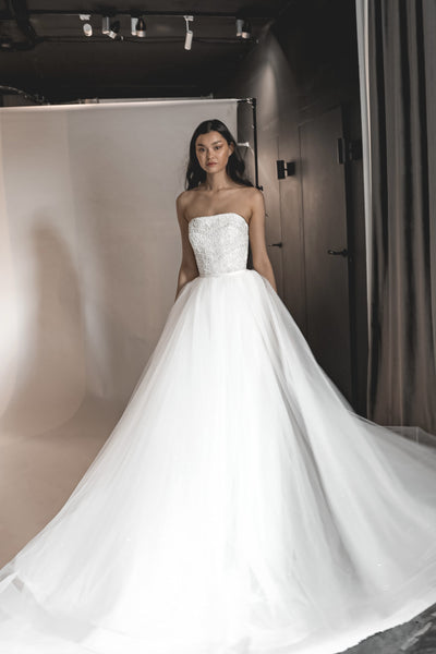 A wedding dress for an apple shape means it will suit you very well if your body is an apple shape. Usually, these dresses aren’t very skintight and have a very nice lush skirt.