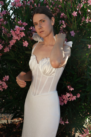 Important info: the width of the lacing area on the back of the wedding dress can range from 1" to 6", depending on measurements and the level of tightening.