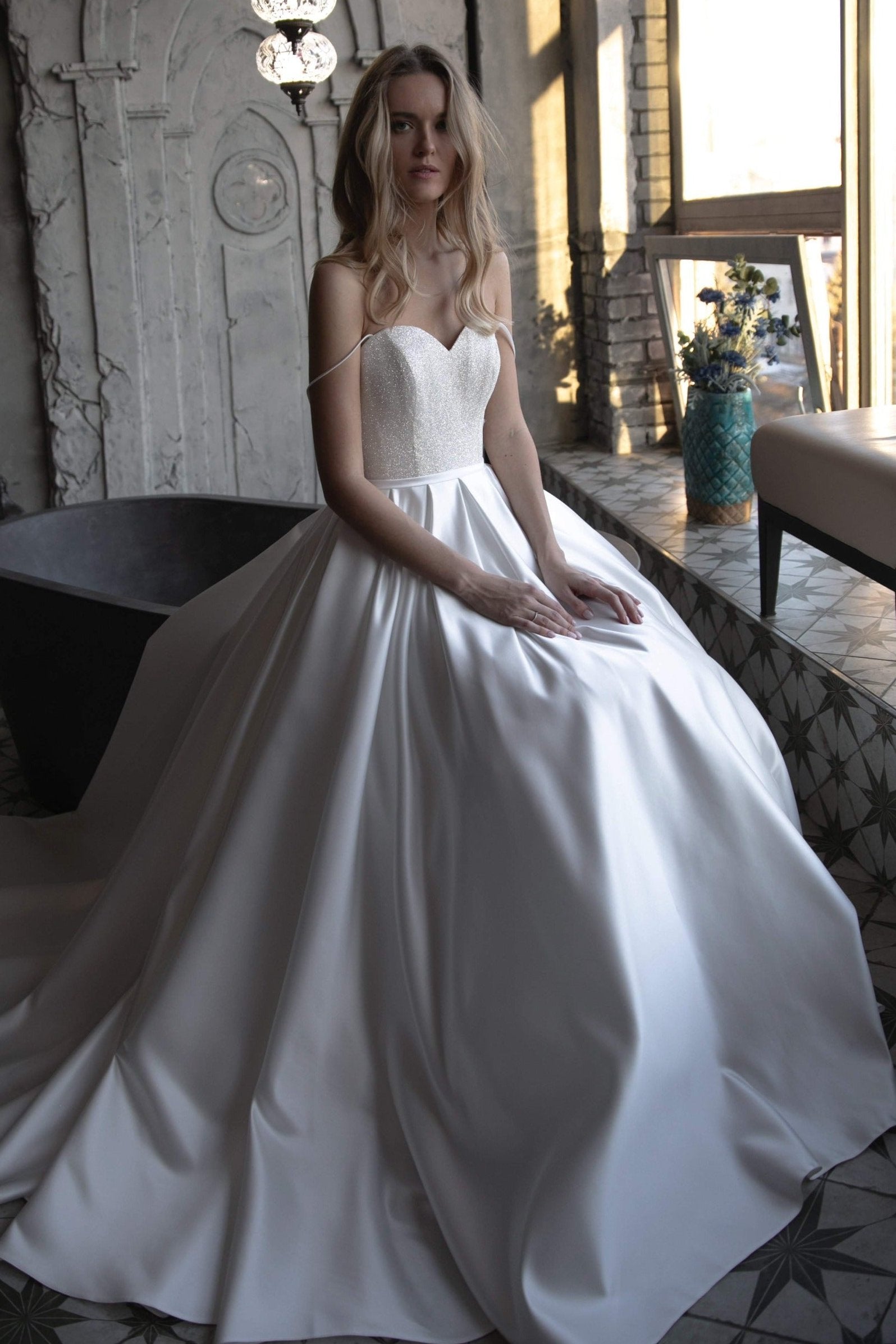 Light ivory Glitter Mermaid Wedding Dress Lovisa with Detachable Bow