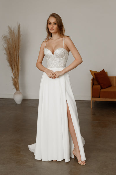 Every body is very unique, and we at Olivia Bottega understand and appreciate this fact more than anyone else. We all have some insecurities and some small parts that we wish to just change a little bit about ourselves, however it doesn't mean that you can’t get the dream dress. We offer a wide selection of perfect wedding dresses for you to feel the most glorious. If you have a body part that you wish to cover, such as chubby arms, then we can offer you a lot of choices to work with.