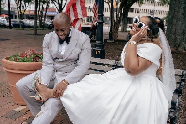 My dress was absolutely beautiful. I was looking forward something dainty and a bit retro. I wanted my dress to give Marilyn Monroe vibes and I was not disappointed. The off the shoulder was my favorite part. I can’t get over how perfect it was. Olivia Bottega for the WIN!! Thank you to the customer service and sales team, everyone was amazing! @lakiesha.monrovia