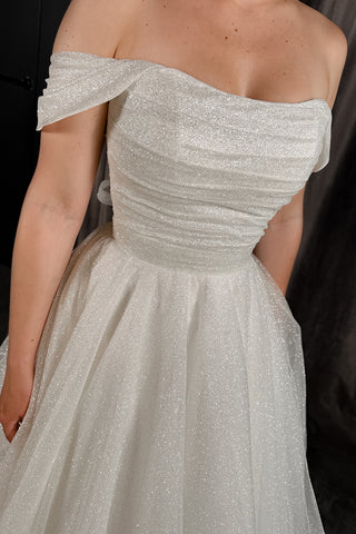Sparkly Wedding Dress Hennie with Detachable Sleeves-Bow