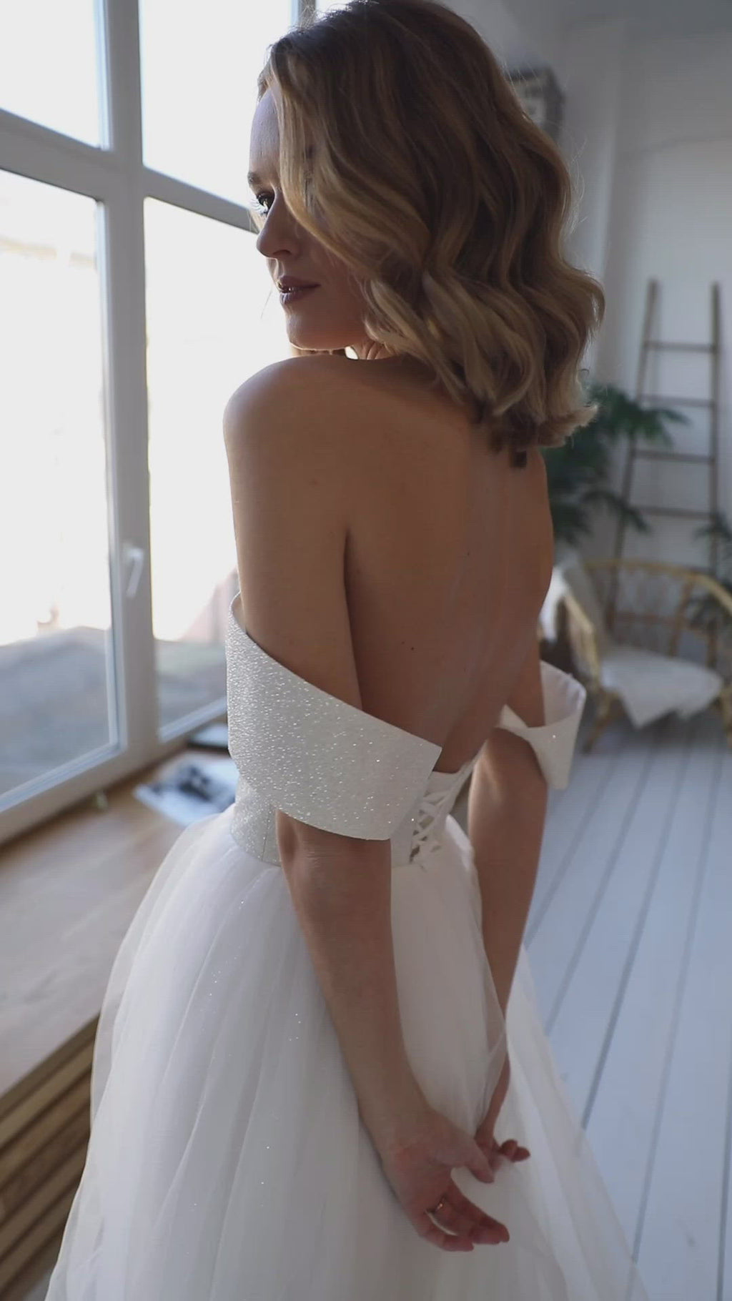 Minimalist Tulle Wedding Dress Klouzi with wide straps