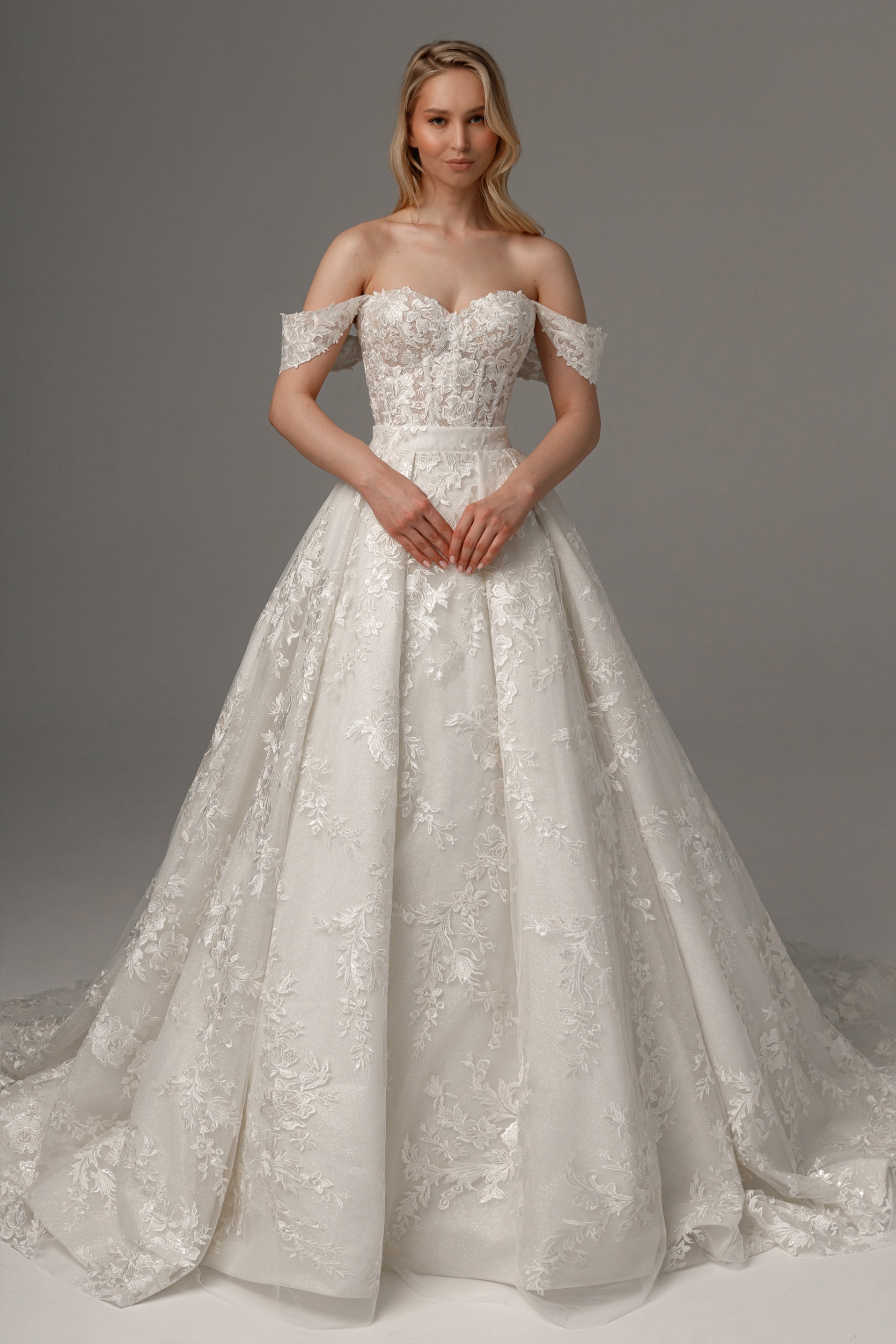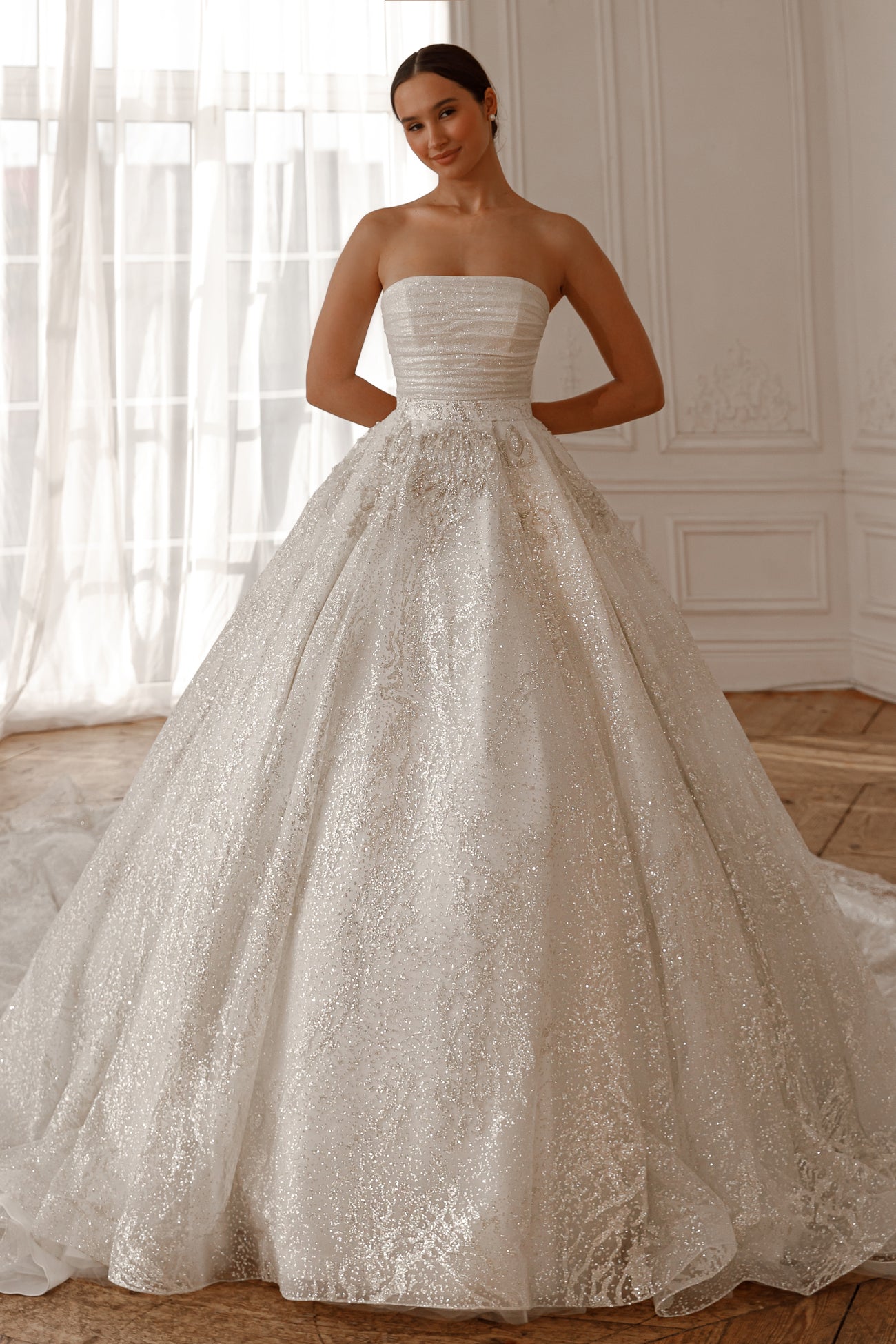 Sie werden Hunderte von Kombinationsmöglichkeiten, Korsetts, die neuesten ungewöhnlichen Brautfarben – mondbeschienen schimmernde Perlmutttöne, abnehmbare Teile, Mini- und Midi-Längen, üppige und luxuriöse Röcke, Etui-Silhouetten, neue Arten von Accessoires und vieles mehr erleben.