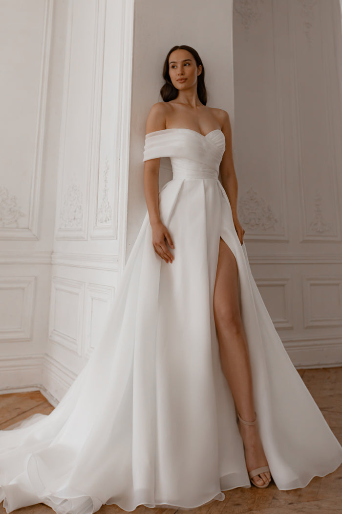 Das asymmetrische Organza-Brautkleid Enola ist perfekt für einen romantischen Kurzurlaub. Sein schulterfreies, ungewöhnliches Design versprüht prinzessinnenhaften Charme, während der Beinschlitz für einen Hauch von Sexyness sorgt. Die lange Schleppe rundet den Look ab und verleiht Ihnen an Ihrem besonderen Tag ein wahrhaft feminines Gefühl.