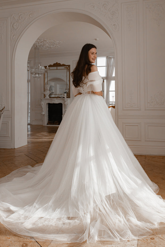 Verspielt und doch elegant – das kurze Organza-Brautkleid Inali verleiht Ihrem großen Tag einen Hauch von Märchenzauber. Das ungewöhnliche schulterfreie Design betont Ihr Dekolleté und der kurze Rock setzt Ihre Beine in Szene. Perfekt für Bräute, die einen verträumten, modernen Look wünschen.