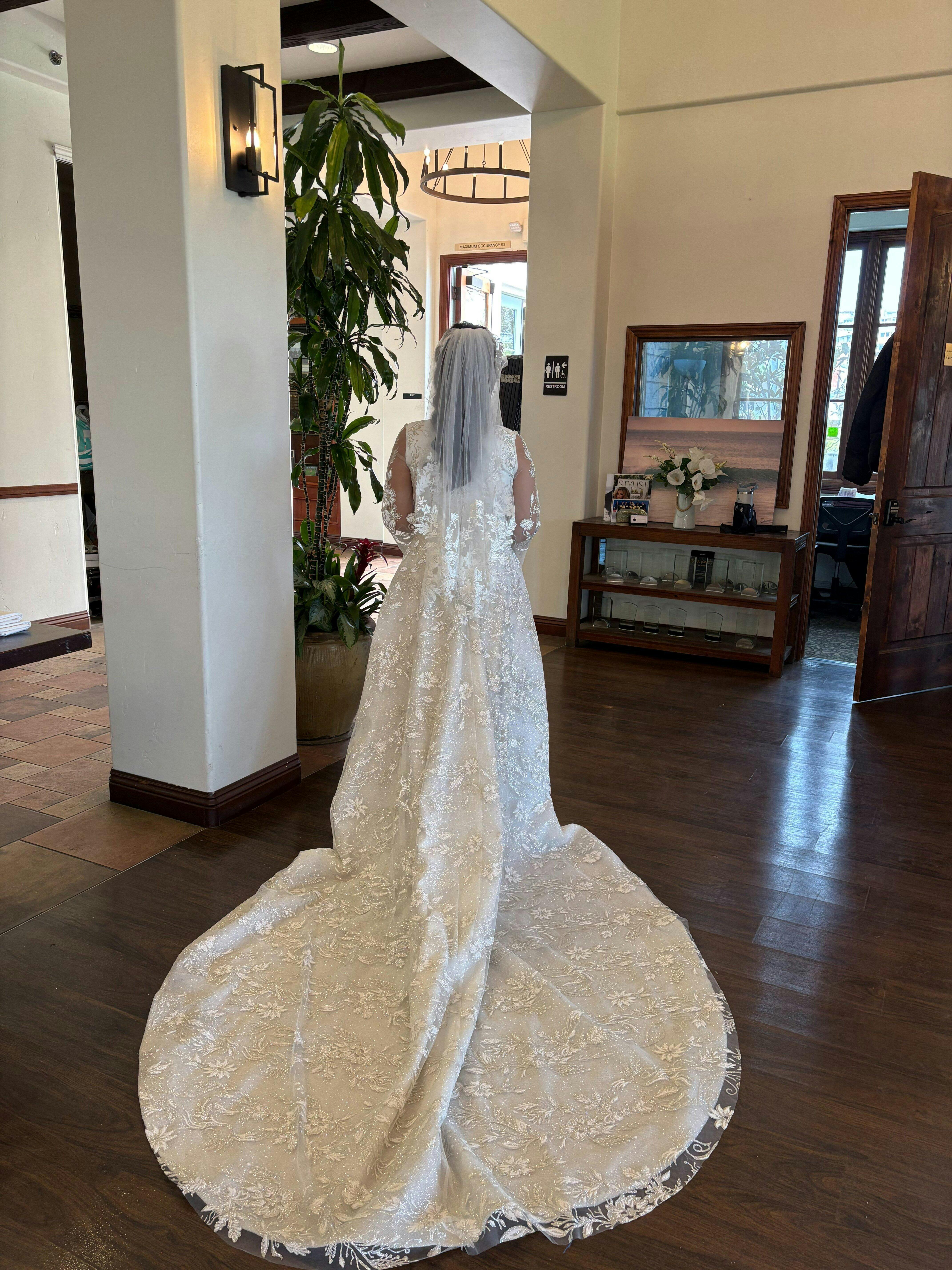 Werten Sie Ihren Brautlook mit einem Spitzenschleier auf, der sich perfekt für jeden Veranstaltungsort eignet und Ihrem besonderen Tag mühelose Romantik und florale Eleganz verleiht.