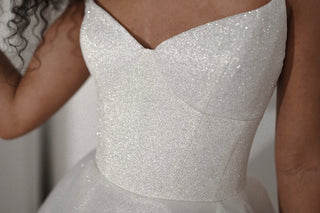 Die individuelle Größenanpassung sorgt für eine perfekte Passform, da das Kleid individuell an Ihre Maße angepasst wird und keine größeren Änderungen erforderlich sind. Dies steht im Einklang mit unseren Werten: Zielstrebigkeit, Nachhaltigkeit und unvergleichliche Handwerkskunst. Durch die Fokussierung auf maßgeschneiderte Designs reduzieren wir Abfall und schaffen für jede Braut ein wahrhaft personalisiertes Erlebnis.