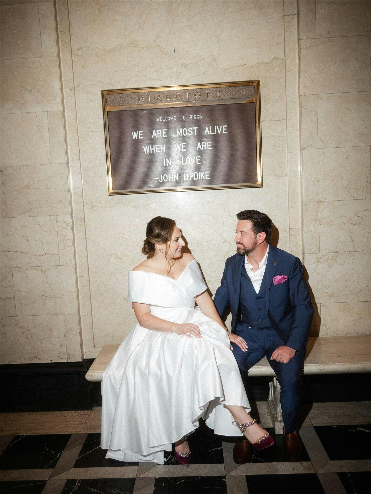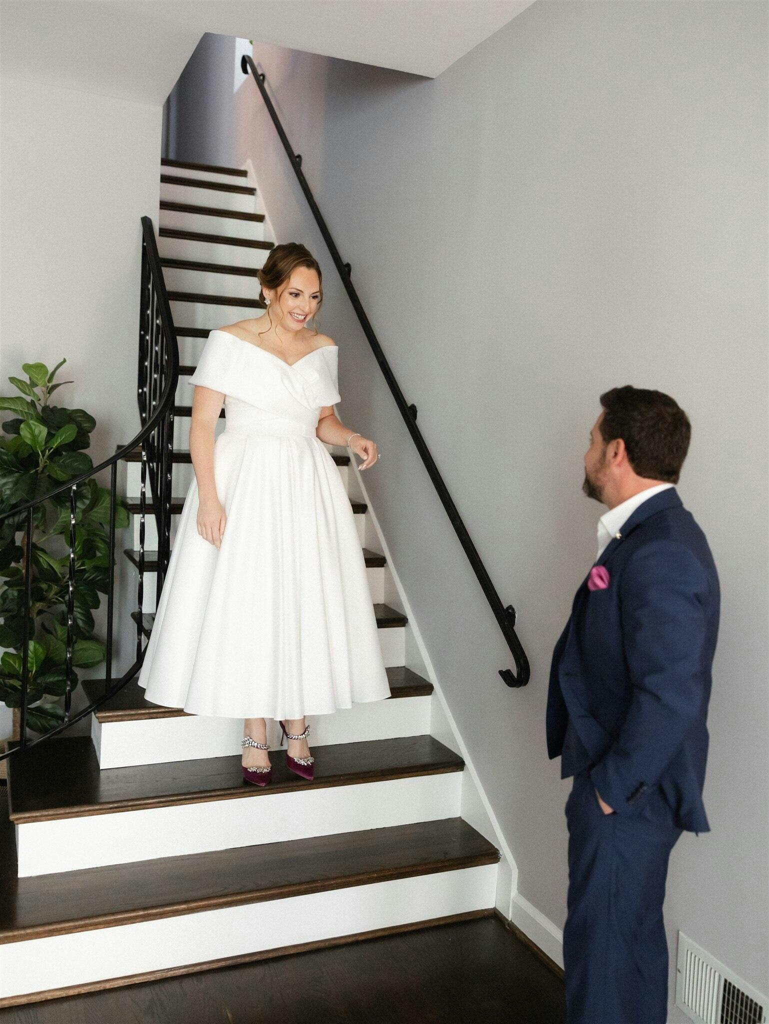 I loved my wedding dress! I wore this for my engagement party turned surprise wedding and it was just perfect. I felt so comfortable and pretty all night. The neckline is so glamorous and it showed off my gorgeous shoes! Would recommend!