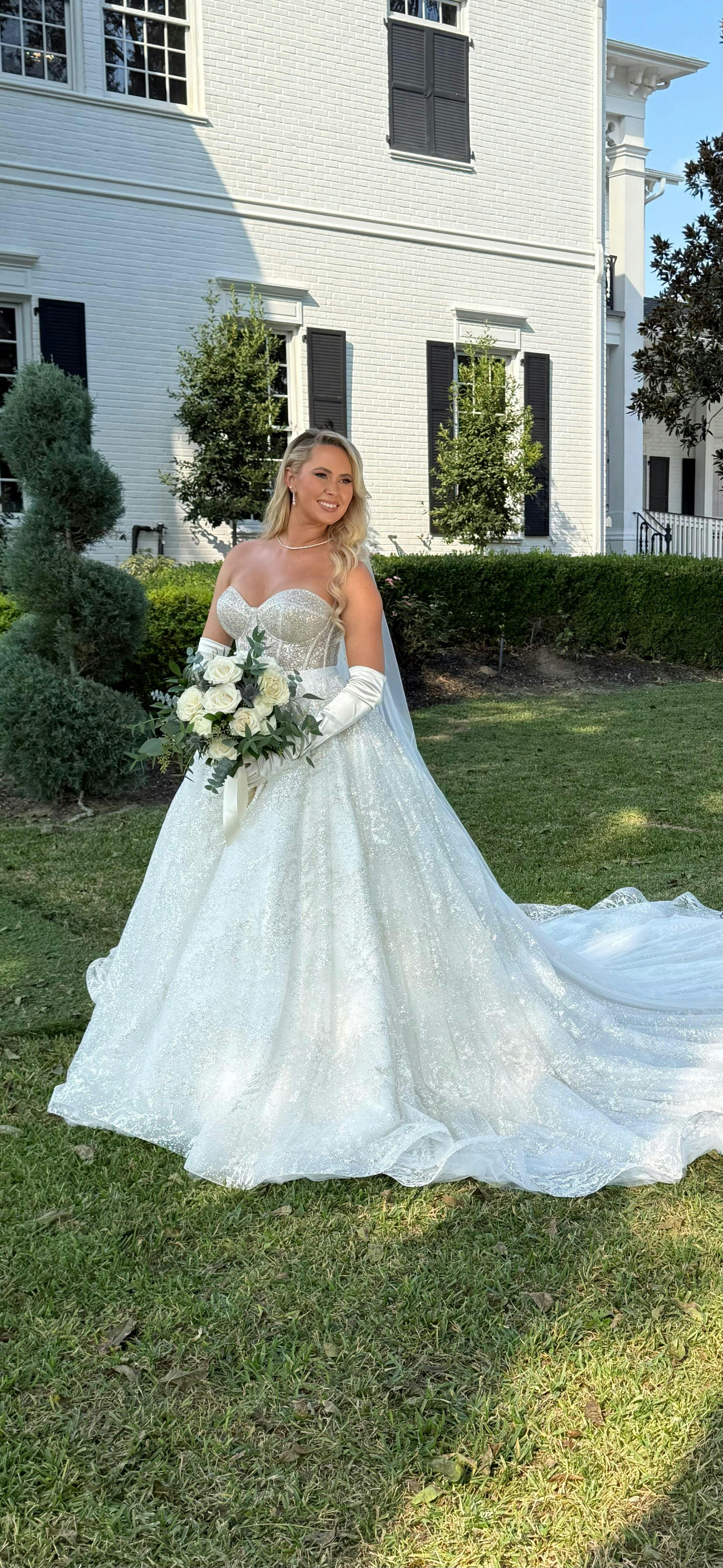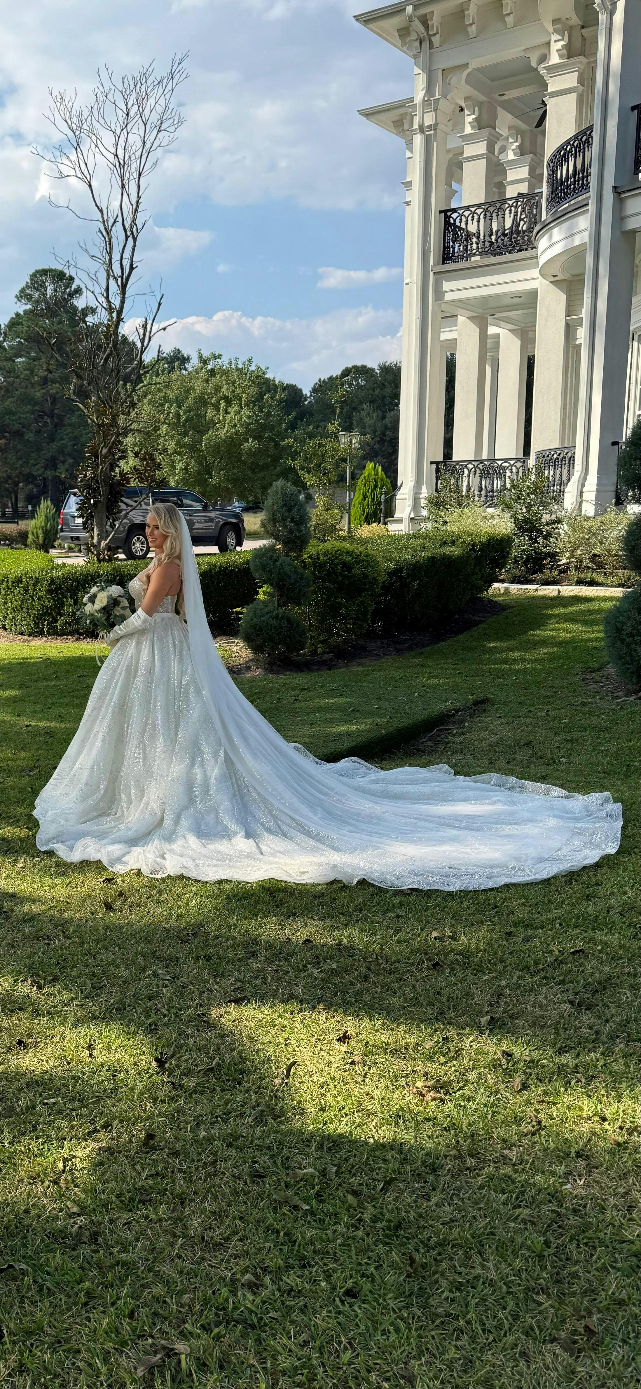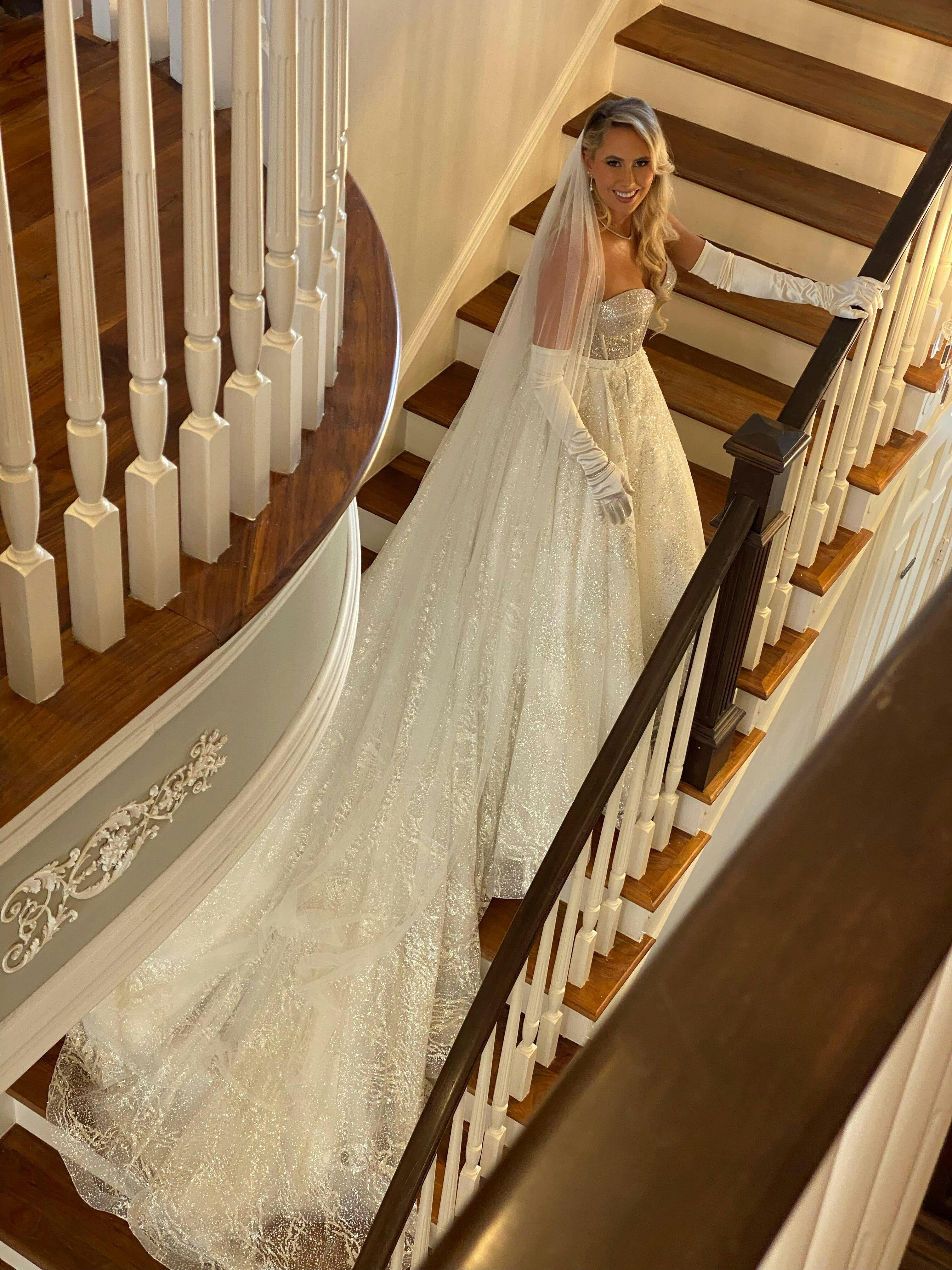 I initially pinned this dress on my Pinterest when I first got engaged, not thinking anything of it. Then I did some more research and decided to give it a try. IT IS A DREAM COME TRUE 🥹❤️ I got mine custom made: everything about it fits so well. I HIGHLY recommend. I feel like a fairy tale princess in this dress! Note: there will be excess glitter (it does tell you about that), so beware. I advise shaking over your tub. Thanks so much!!! Will post pics when my wedding happens ❤️