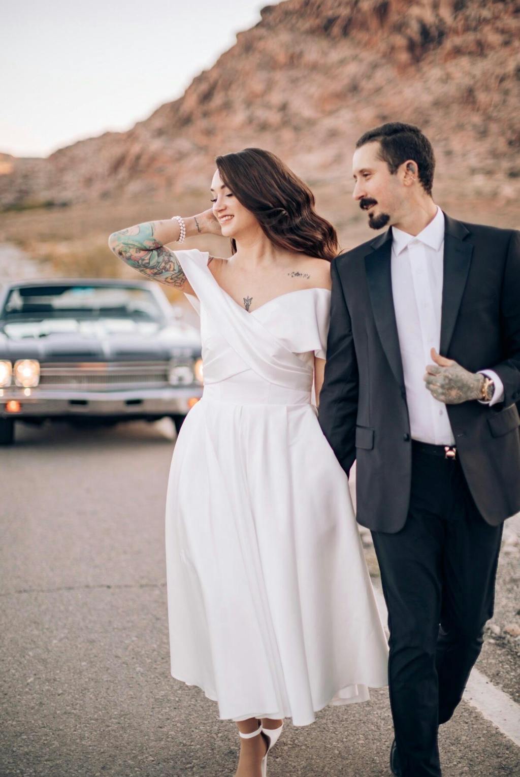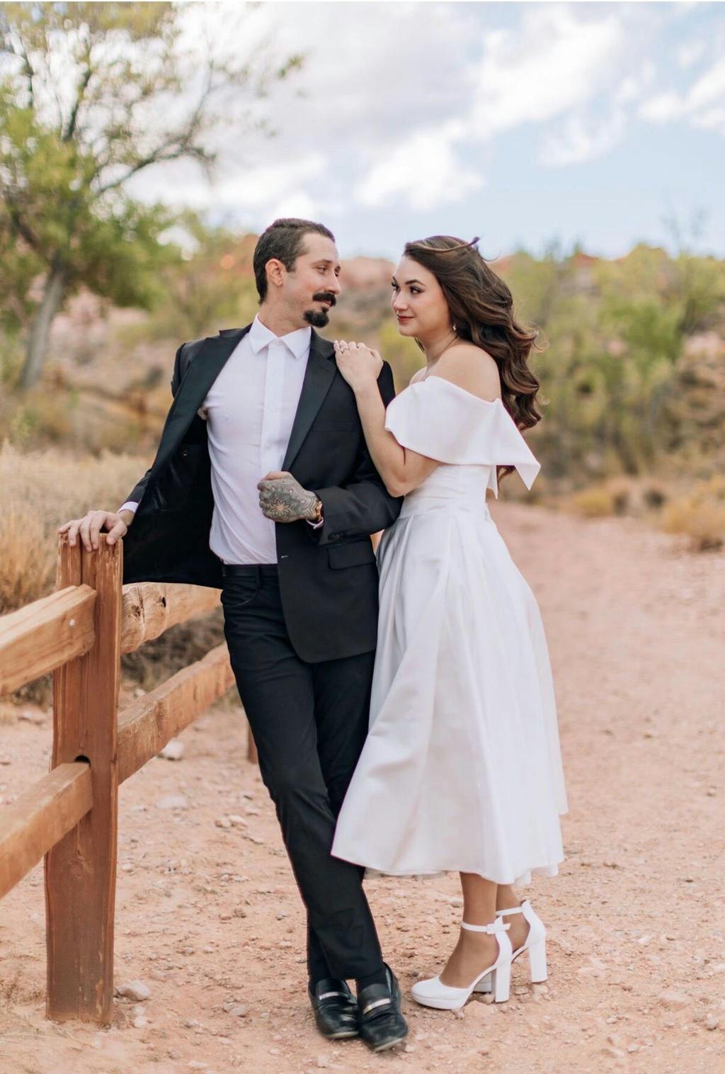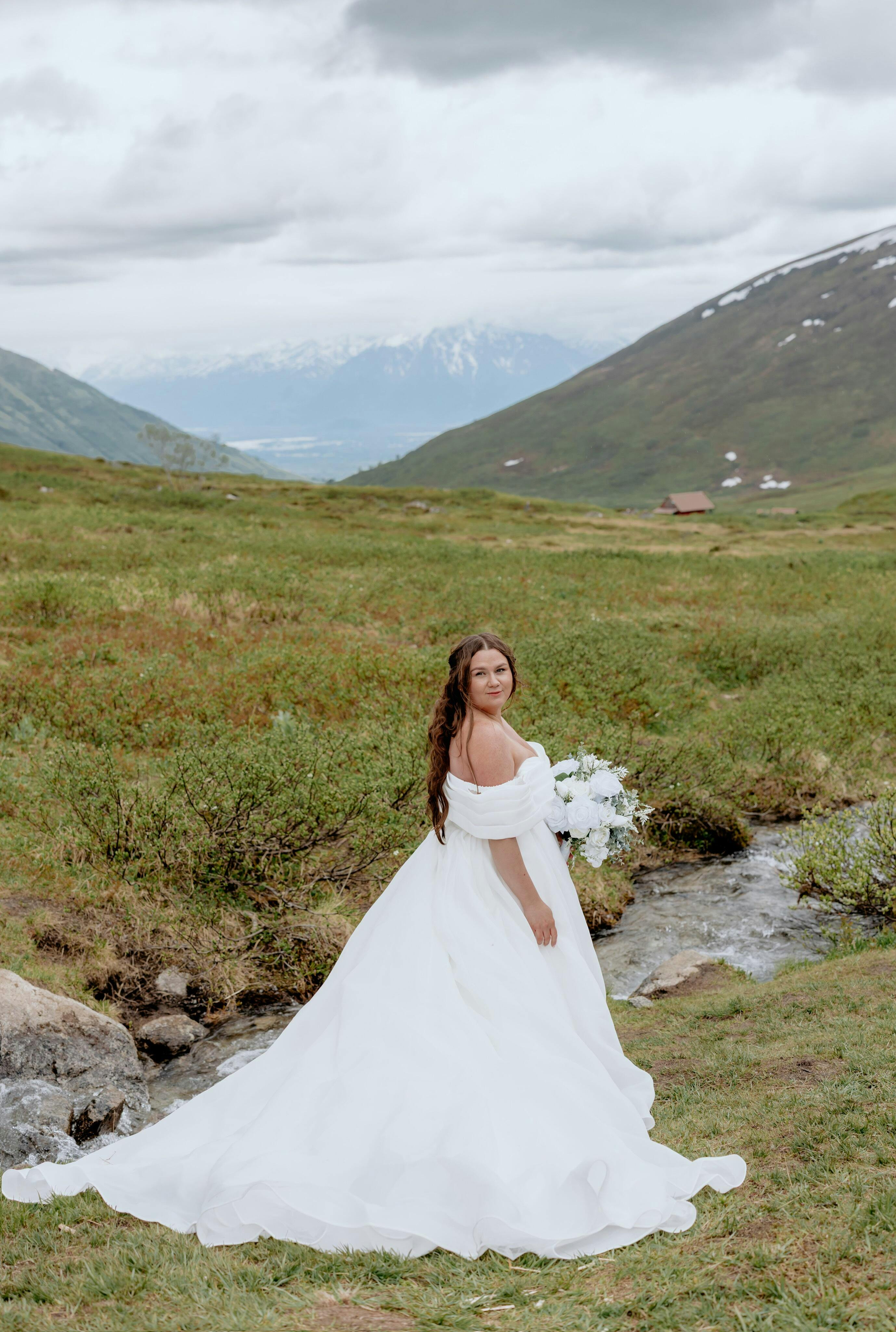 The Lovisa was my dream rock and roll wedding dress! I ordered custom sizing and it came exactly to my specifications. I didn’t need any alterations! Plan the height for your shoes you plan to wear. Customer support helped me a lot figuring out what worked best for me and was prompt answering my questions. I added a corset back to this and they did it for me at no extra cost as it was originally designed for the Lovisa. This was perfect for a curvy girl like me and the internal boning gave me excellent support. Looking on the inside of the dress, I can see it was extremely well made and the photos just don’t do the sparkle in this dress justice. I will say though it sheds glitter a lot. I recommend you beat out a bit of the excess and test an area with hairspray to help with the shedding. It’s still going to shed all over you but not as much as it would have. Lastly, the slit in this dress gives you a lot of mobility to sit, dance, and walk but can also be modest if you’re not sticking your leg out. This dress was worth every penny!!
