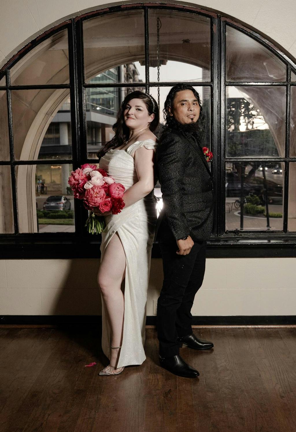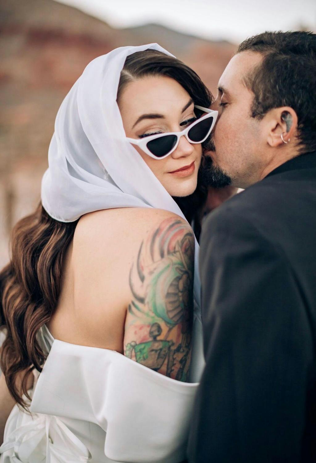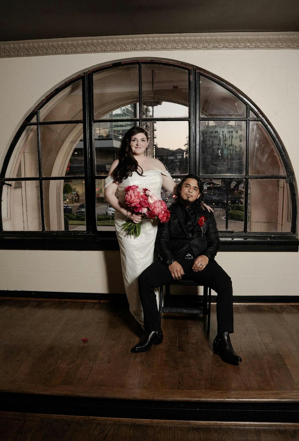 The Lovisa was my dream rock and roll wedding dress! I ordered custom sizing and it came exactly to my specifications. I didn’t need any alterations! Plan the height for your shoes you plan to wear. Customer support helped me a lot figuring out what worked best for me and was prompt answering my questions. I added a corset back to this and they did it for me at no extra cost as it was originally designed for the Lovisa. This was perfect for a curvy girl like me and the internal boning gave me excellent support. Looking on the inside of the dress, I can see it was extremely well made and the photos just don’t do the sparkle in this dress justice. I will say though it sheds glitter a lot. I recommend you beat out a bit of the excess and test an area with hairspray to help with the shedding. It’s still going to shed all over you but not as much as it would have. Lastly, the slit in this dress gives you a lot of mobility to sit, dance, and walk but can also be modest if you’re not sticking your leg out. This dress was worth every penny!!