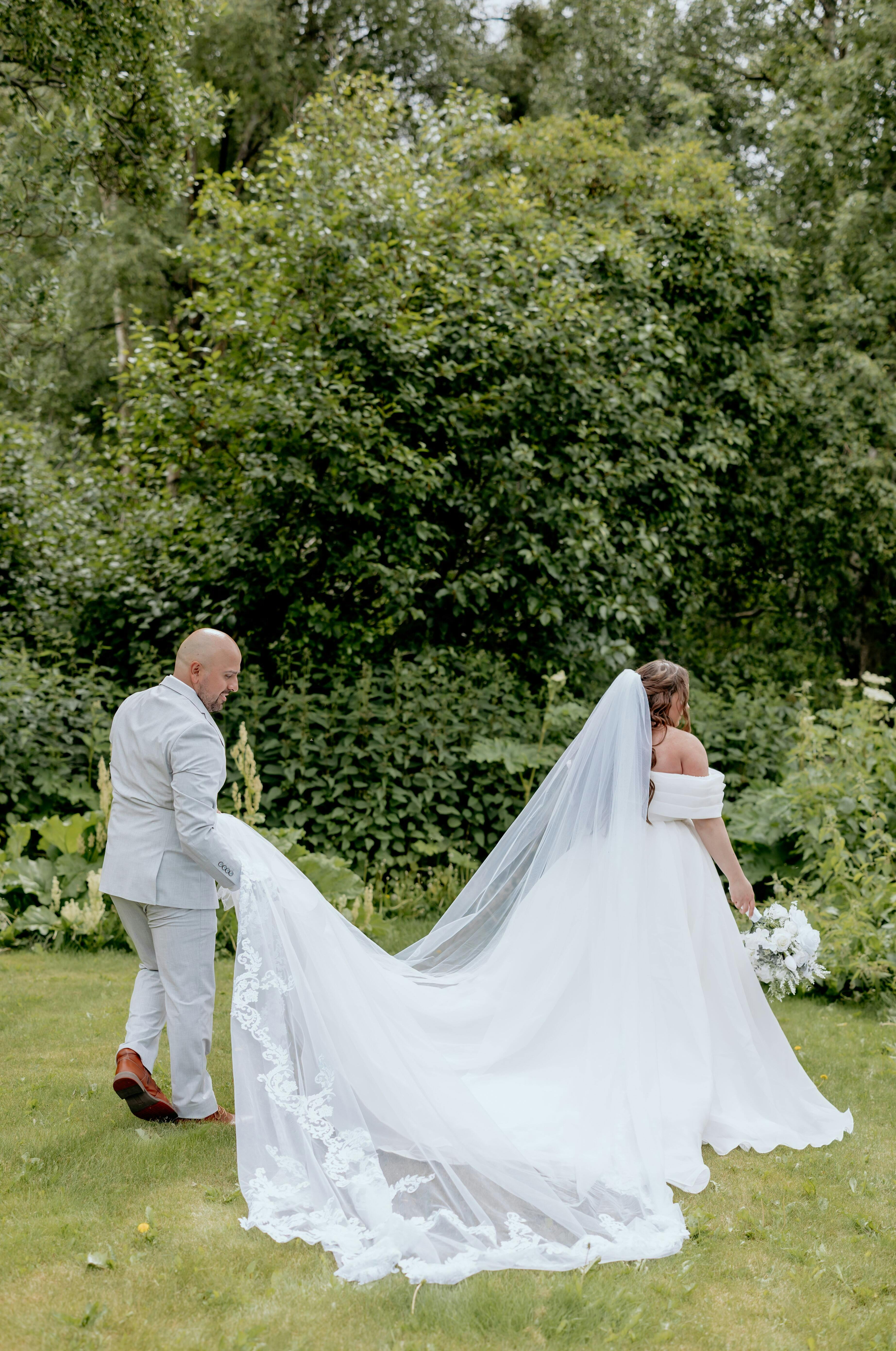 Beautiful veil. I had to turn mine into a cape because of how very heavy it is. It was ripping out my hair. It also left a unbelievable amount of sand like glitter EVERYWHERE. I took months to clean the glitter out of my house.