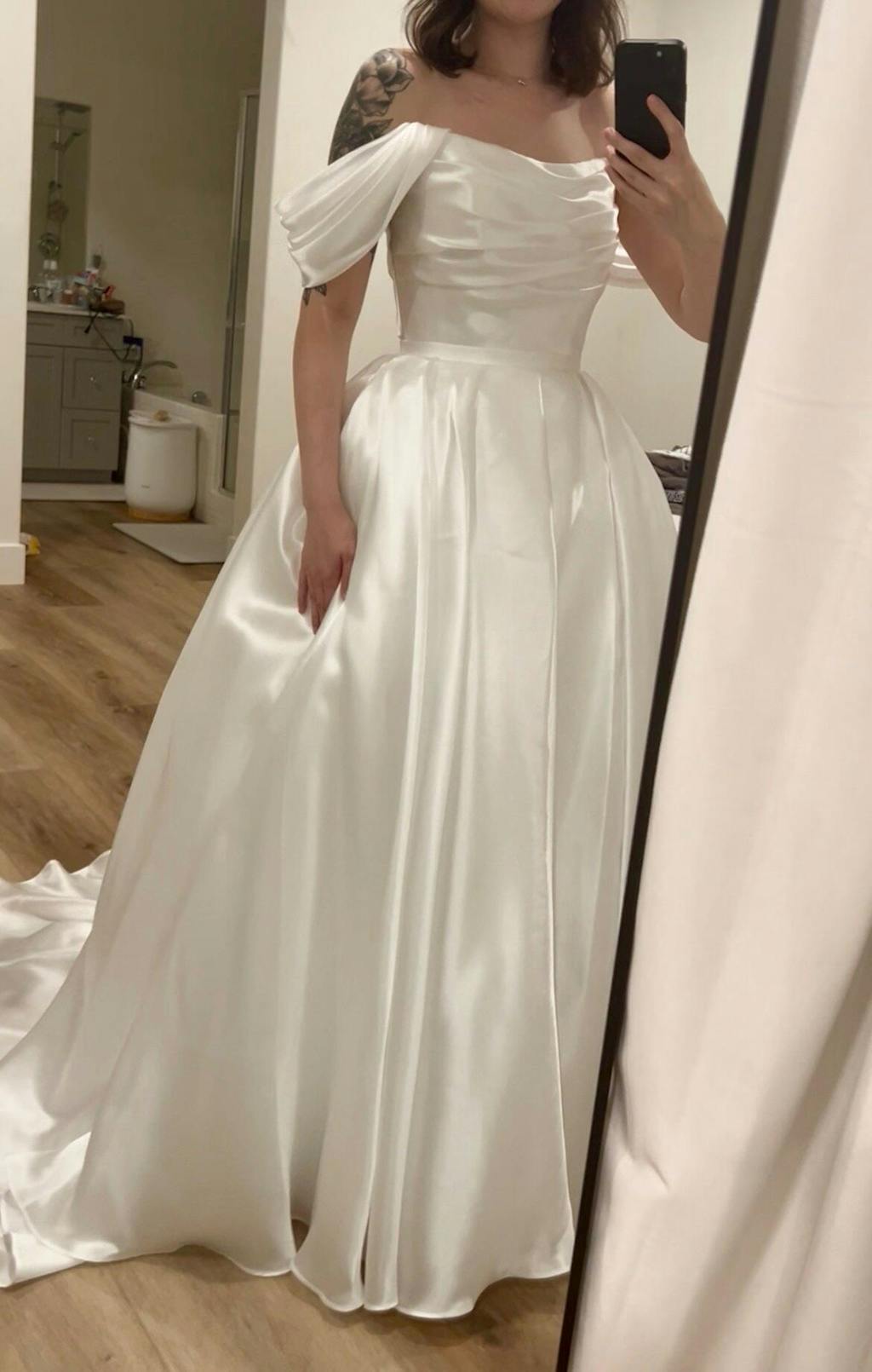 Simple and Classic! Perfection! I felt so beautiful and was comfortable all day in this dress. Bonus for pockets. Customer service was amazing! I had an issue with the dress and I contacted them and they replaced it so quickly. Highly recommended this company. You will not be disappointed with the quality and care. I ordered the size US8 I’m 5’7” and 157lbs