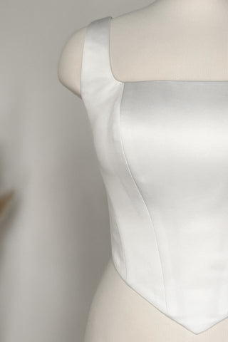 This light ivory satin corset features a square cutout and skin-tight design. Its unique silver shade adds timeless chicness and comfort to any dress.
