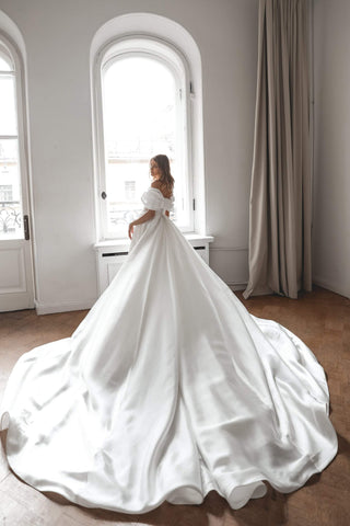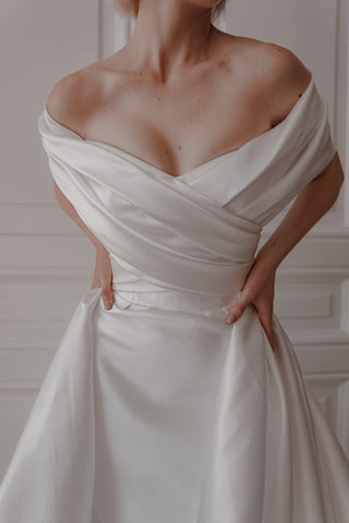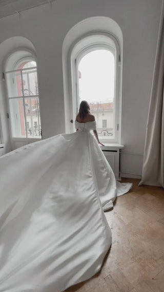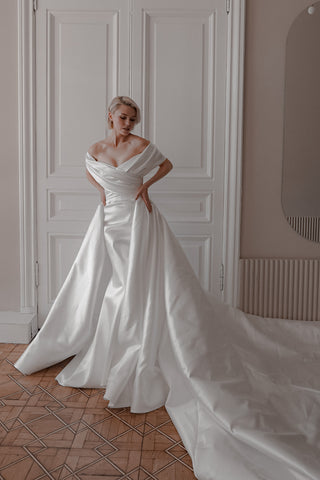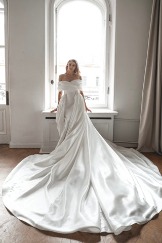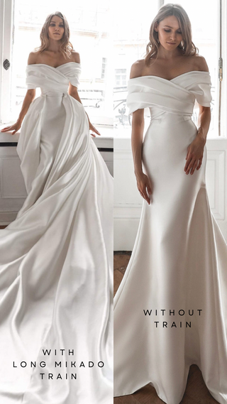 The Jacqueline dress is truly the dress of my dreams! After trying on so many dresses and working with different styles, I realized that the mermaid silhouette was perfect for me. I also wanted to add more drama and a "wow" factor, so a detachable train was the perfect option! I decided to wear it for the ceremony, surprising my groom, who had already seen my first look, and wowing our guests. By the way, the train is very securely attached and doesn’t slip off, as it's fastened with hooks at the waist in the back. Super high quality!
