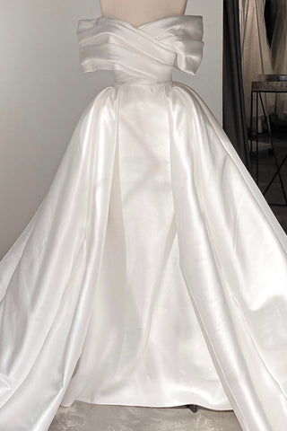 This silvery Mikado skirt features waistline creases for an hourglass figure and a fluttering train, adding a refined, old-money touch to your look.