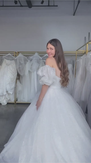 Glitter Mini Skirt Wedding Dress Ebba With Detachable Sleeves